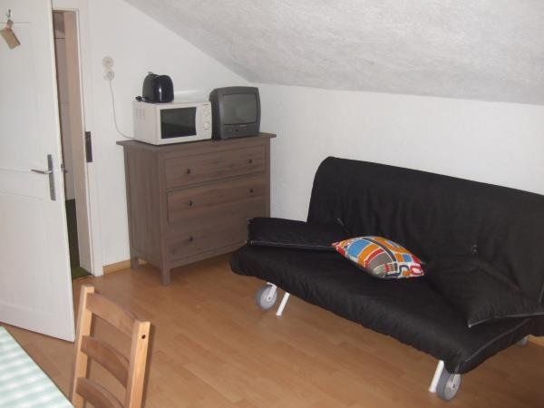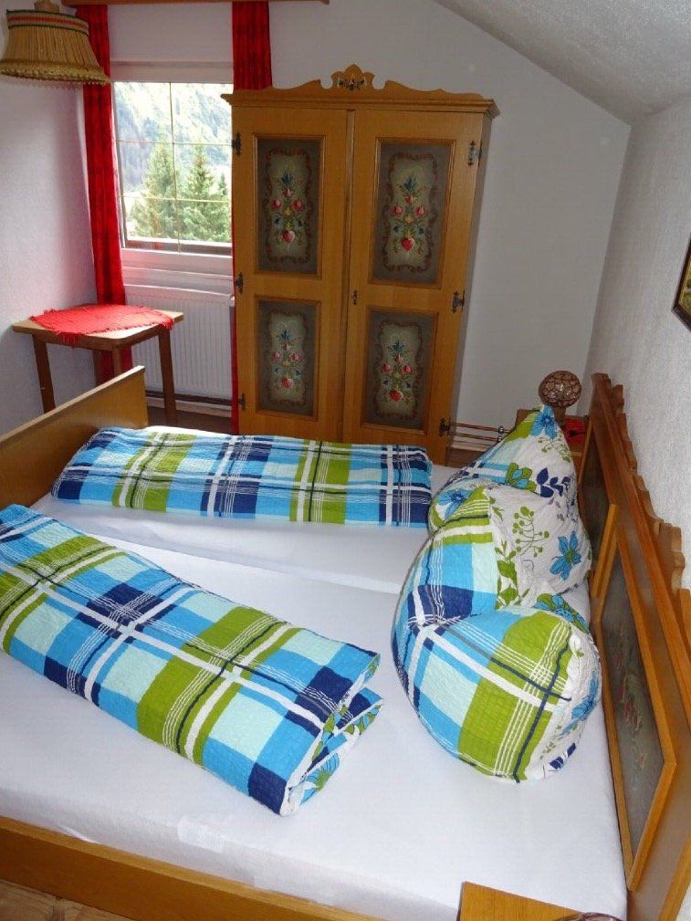 Cozy and functional apartment for 4 persons with about 36 sqm. You have a bedroom with double bed and a small bathroom (access via bedroom). In the living-dining area you have a comfortable sofa bed (1.6 x 2m) for 2 persons. The kitchenette is equipped with 4-ring ceramic hob. Microwave, toaster, kettle and filter coffee machine are also available. From the balcony you can enjoy a panoramic view over Berwang to the summit of the "Red Stone" and the local mountain "Hönig".